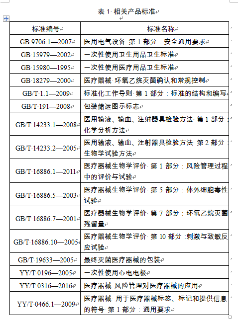 一次性使用心電電極產(chǎn)品技術(shù)要求編寫(xiě)的規(guī)范性,引用標(biāo)準(zhǔn)的適用性、準(zhǔn)確性。