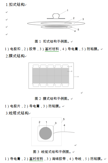 一次性使用心電電極產(chǎn)品按結(jié)構(gòu)和連接方式可分為扣式、膜式、線纜式等。