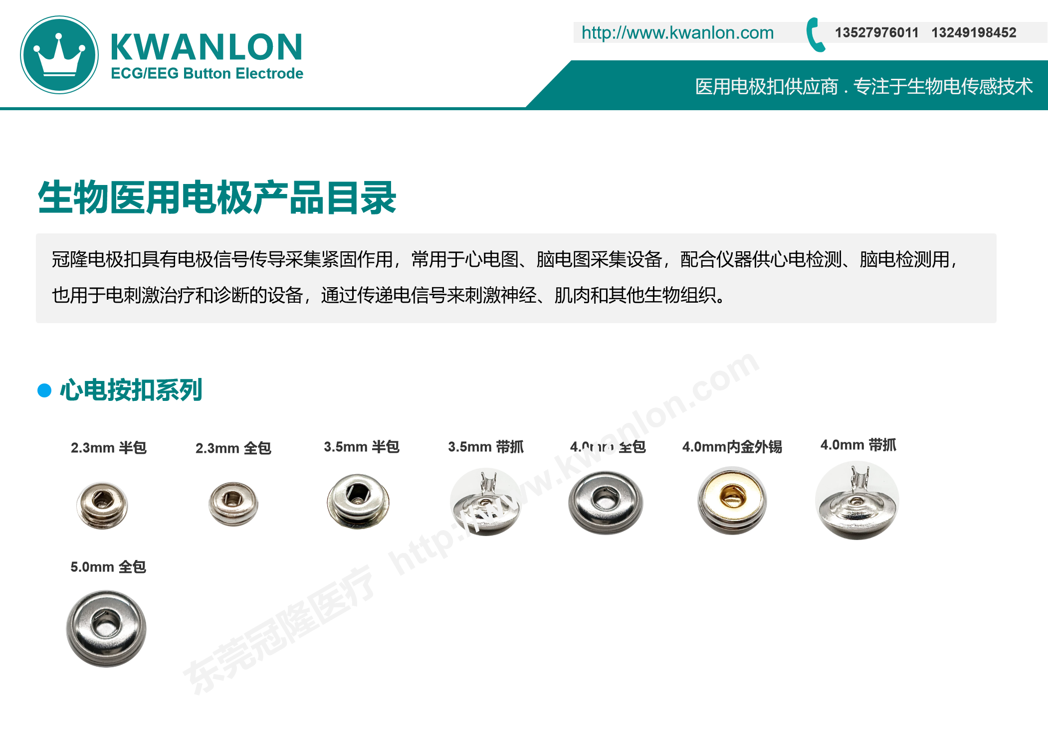 每一款電極扣母扣都有相對(duì)應(yīng)的公扣、底扣(ABS鍍氯化銀扣),規(guī)格尺寸從2.3至5.0,公扣規(guī)格2.2至4.7;每一款電極扣母扣都有相對(duì)應(yīng)的公扣、底扣(ABS鍍氯化銀扣),規(guī)格尺寸從2.3至5.0,公扣規(guī)格2.2至4.7。冠隆電極扣規(guī)格款式在國(guó)內(nèi)同類(lèi)廠家算是比較齊全的,歡迎各界前來(lái)咨詢(xún)!